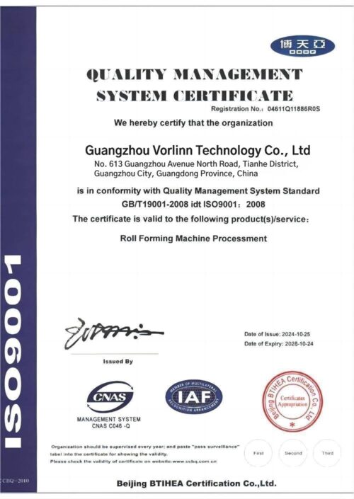 Vorlinn’s roll forming machines are capable of processing various types of materials, including aluzinc, galvanized steel, and colored steel coils, providing versatility in production capabilities.